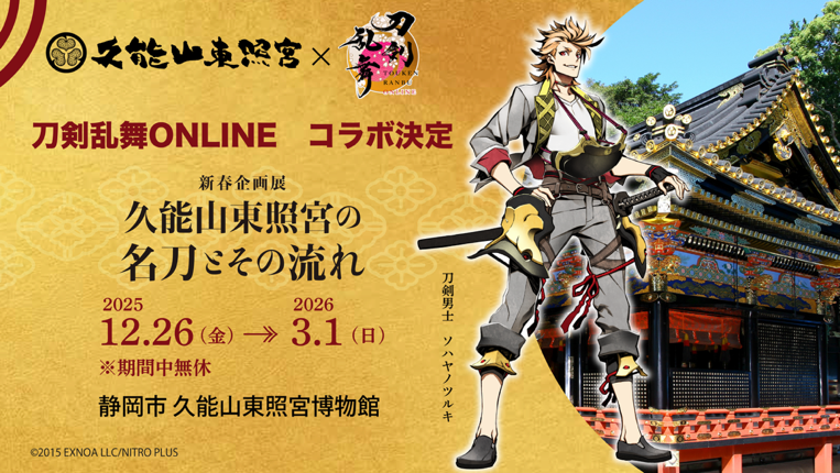 国宝・久能山東照宮ならびに日本平ロープウェイでは、久能山東照宮博物館企画展「久能山東照宮の名刀とその流れ」の開催を記念し、大人気ゲーム “刀剣乱舞ONLINE” とのコラボレーション企画を実施します。