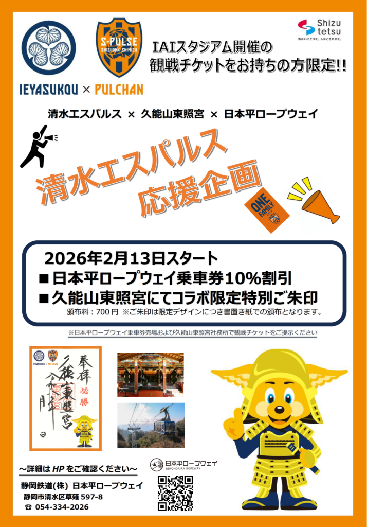 日本平ロープウェイでは、久能山東照宮と株式会社エスパルスと合同連携し、